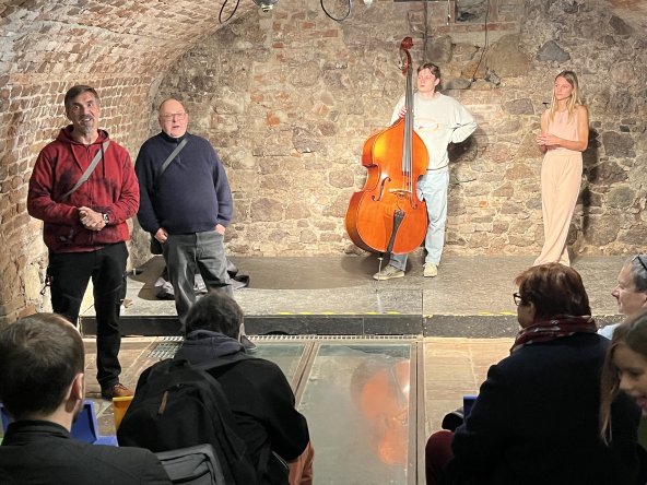 FRANTIŠEK MUCHA (nar. 14. 8. 1993), student Intermediálního ateliéru doc. Petra Lysáčka na Fakultě umění Ostravské Univerzity. Bydlí v malé vesničce Leskovec na Valašsku. V Divadle Koráb uvedl výstavu maleb Každodenní bizarnosti.